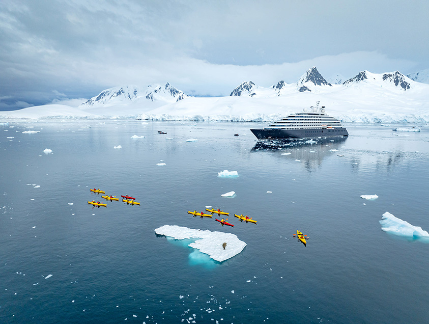 To experience the Antarctic Peninsula is an experience unlike any other. The glacial landscapes, unique wildlife and sense of isolation make for an unforgettable journey. This Expedition Voyage takes you further, with opportunities to dive below the surface in a submersible^ and a once-in-a-lifetime experience to travel by helicopter^ to the remote Snow Hill Island in the Weddell Sea, home to 4,000 breeding pairs of rare Emperor penguins. The pristine wilderness of the Falkland Islands blends white-sand beaches and aquamarine water with historic settlements and Gentoo penguins. Be inspired by this eclectic mix of natural beauty and vivid history as you learn the story of the 1980’s Falklands War. Often called the Galapagos of the Poles, South Georgia features impressive mountain vistas, world’s largest King penguin colonies and the history of Shackleton’s famed Antarctic expedition.