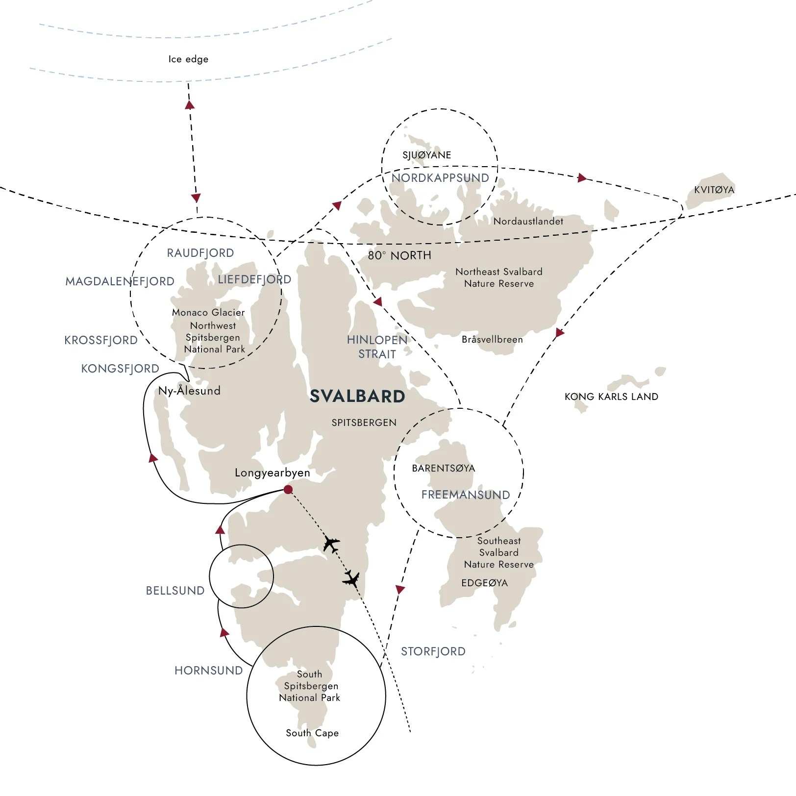 - Marvel at rugged landscapes home to iconic wildlife as we attempt to circumnavigate the entire Svalbard archipelago during the Arctic summer.