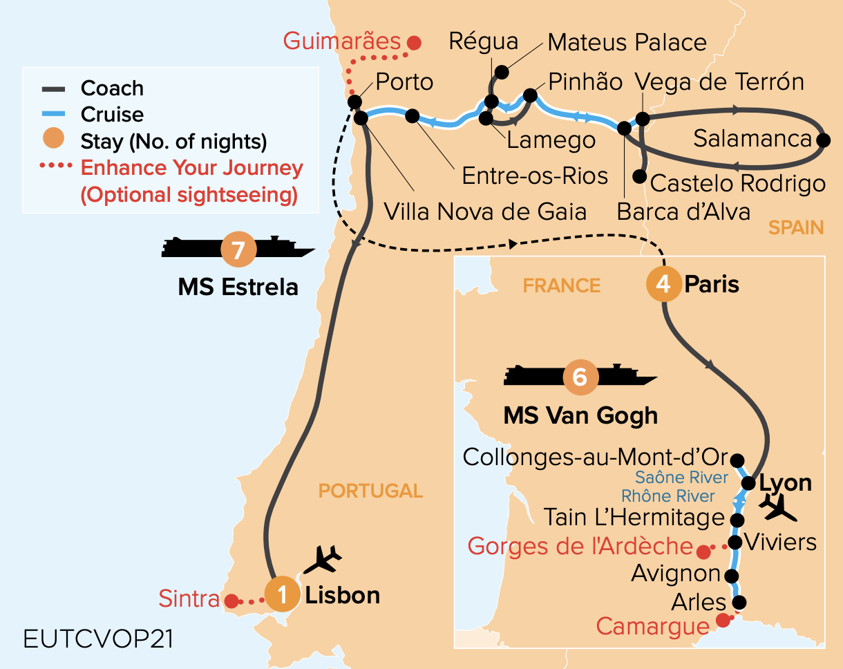 - Three nights in Lisbon with four nights in Paris in premium accommodation