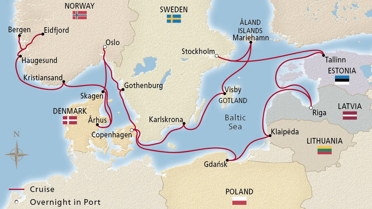 Circumnavigate the Baltic Sea as you sail through the homelands of the Vikings. Explore the deep-rooted cultural ties of Scandinavia, calling at iconic capitals in Norway, Sweden and Denmark. Sail the picturesque Åland Islands, an archipelago of 6,700 isles. Immerse yourself in the customs, traditions and fascinating history of the Baltic states, home to UNESCO World Heritage Sites, including the old town of Tallinn and the historic center of Riga.