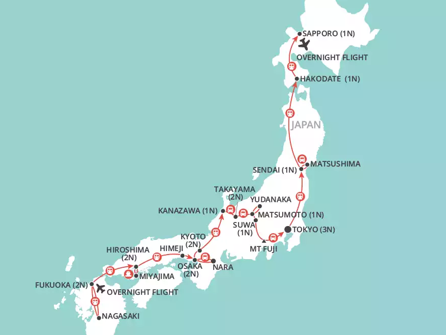An all-encompassing journey through Japan, travelling mainly by bullet train and taking in the highlights of all three main islands: Kyushu, Honshu and Hokkaido. Experience ancient traditions and modern Japan’s unique charm.