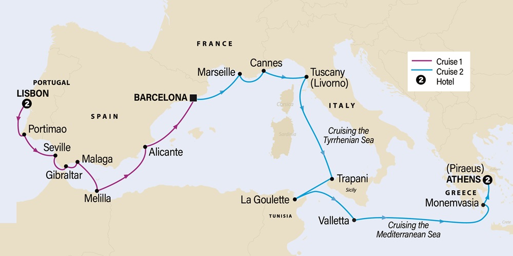 Take an exceptional trip with Regent Seven Seas Navigator® from Lisbon to Athens and top it all off with five star stays at the beginning and end of your voyage. With a huge range of possible shore excursions* included in your fare, all your delicious meals & onboard beverages, this is the ultimate way to explore the Mediterranean.