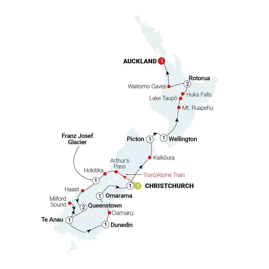 One country, two islands, two weeks, countless highs… this could well be the ultimate New Zealand guided tour. Standouts include gem-like Franz Josef/Waiau, cruise through World Heritage listed Milford Sound/Piopiotahi, Waitomo Caves tours to spot glowworms, and expeditions across turquoise lakes. We haven’t even mentioned the atmospheric towns and cities yet – tours in Queenstown, Auckland, Wellington, Dunedin and Christchurch all beckon.