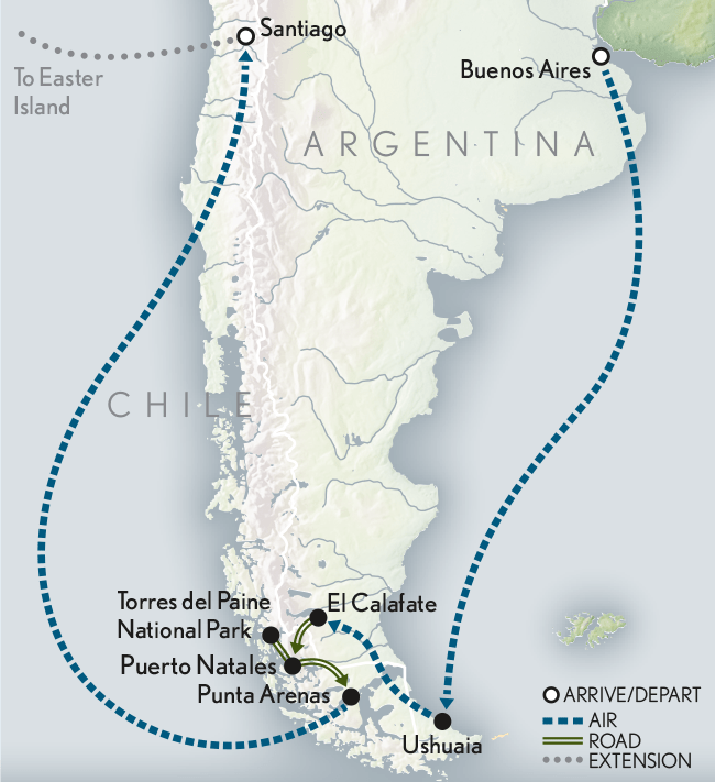 Marvel at the stunning spectacle of the pristine Patagonian wilderness as you stroll among Magellanic penguin, explore rugged Torres del Paine National Park and view the astonishing Perito Moreno Glacier on an exhilarating adventure at the ends of the earth.