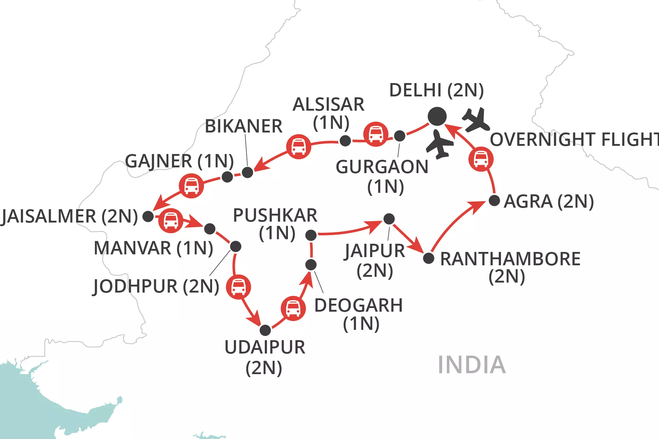 Rajasthan conjures up images of maharajahs and palaces and is regarded as one of the most colourful and exciting states in all of India. Marvel at the beauty of this region’s diverse landscapes, as you travel across deserts, lakes and national parks.