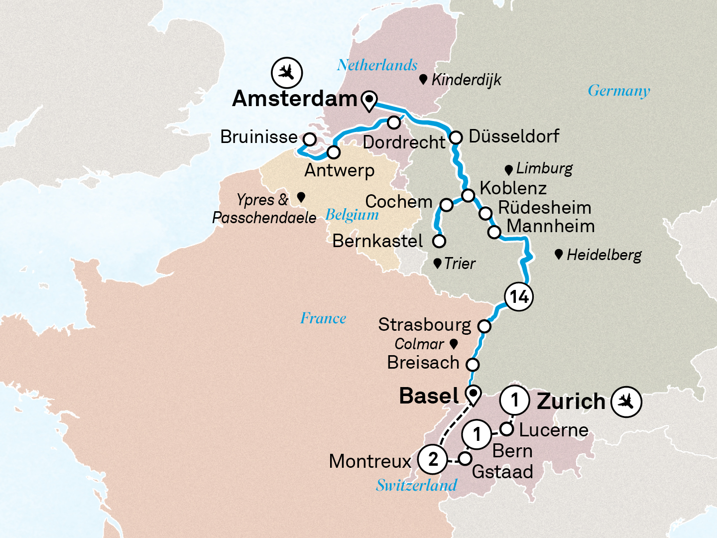 Take a spectacular journey through Switzerland, from the cosmopolitan city of Zürich to the lakeside town of Montreux on a five-day journey. Then board your Scenic Space-Ship in Basel for a cruise along the blissful waterways of the Rhine and its idyllic tributary, the Moselle. A fairytale moment awaits around each bend, from the half-timbered houses of Cochem to the flower-filled parks of Koblenz and the mysterious Black Forest. Immersive experiences will give you a taste of the real Europe – cycle along the riverbank, pair beer with chocolate, eat oysters fresh from the ocean, tour the infamous battlefields of two World Wars, and be awed by a private concert in the famed Liebfrauenkirche.