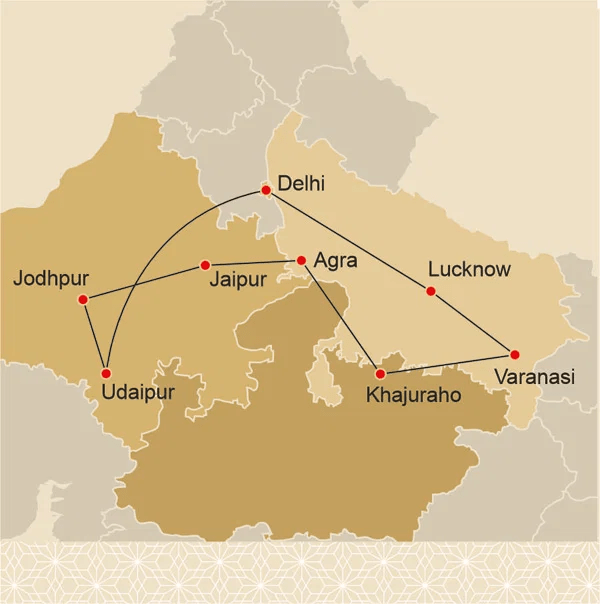 ⚲ Delhi – Lucknow – Varanasi – Khajuraho – Agra – Jaipur – Jodhpur – Udaipur – Delhi