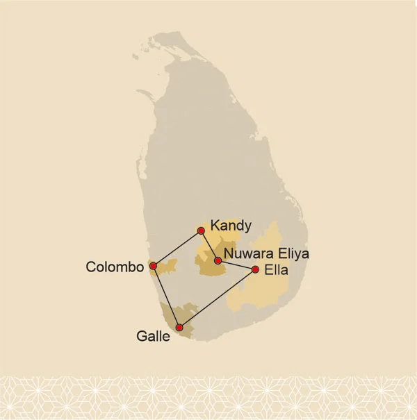 ⚲ Colombo – Galle – Ella – Nuwara Eliya – Kandy – Colombo