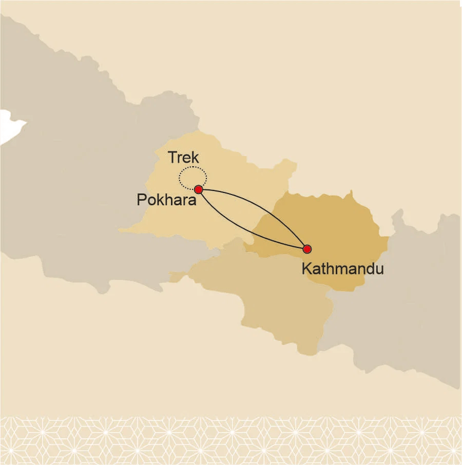 ⚲ Kathmandu – Pokhara – Dhampus – Majhgaun – Ghandruk – Birenthanti – Pokhara – Kathmandu